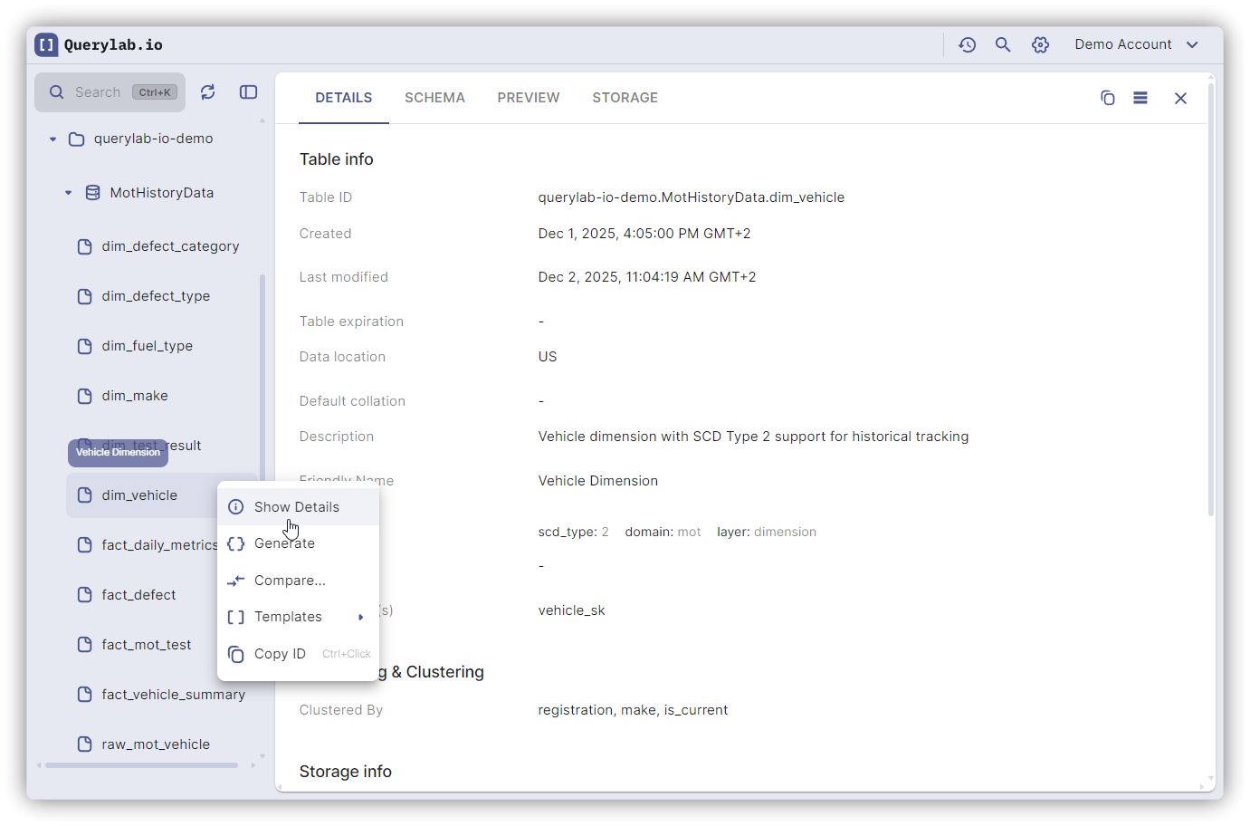 View schema, preview data, and metadata for any table.