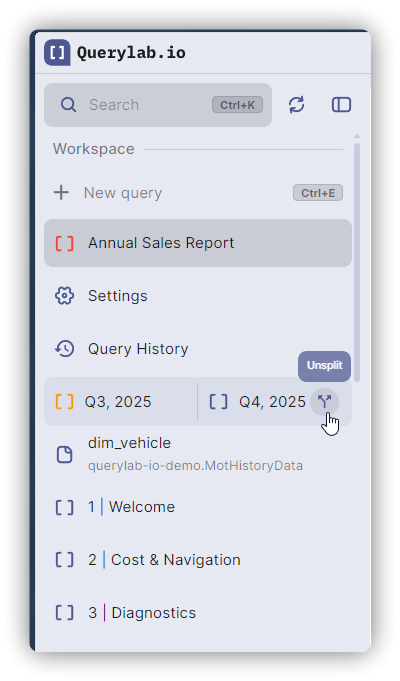 Cmd/Ctrl+Shift+Hopens query history in new tab