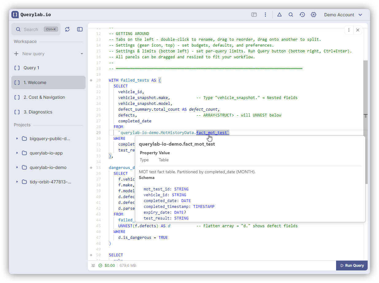 Navigate, understand, and refactor SQL with IDE-level tooling.
